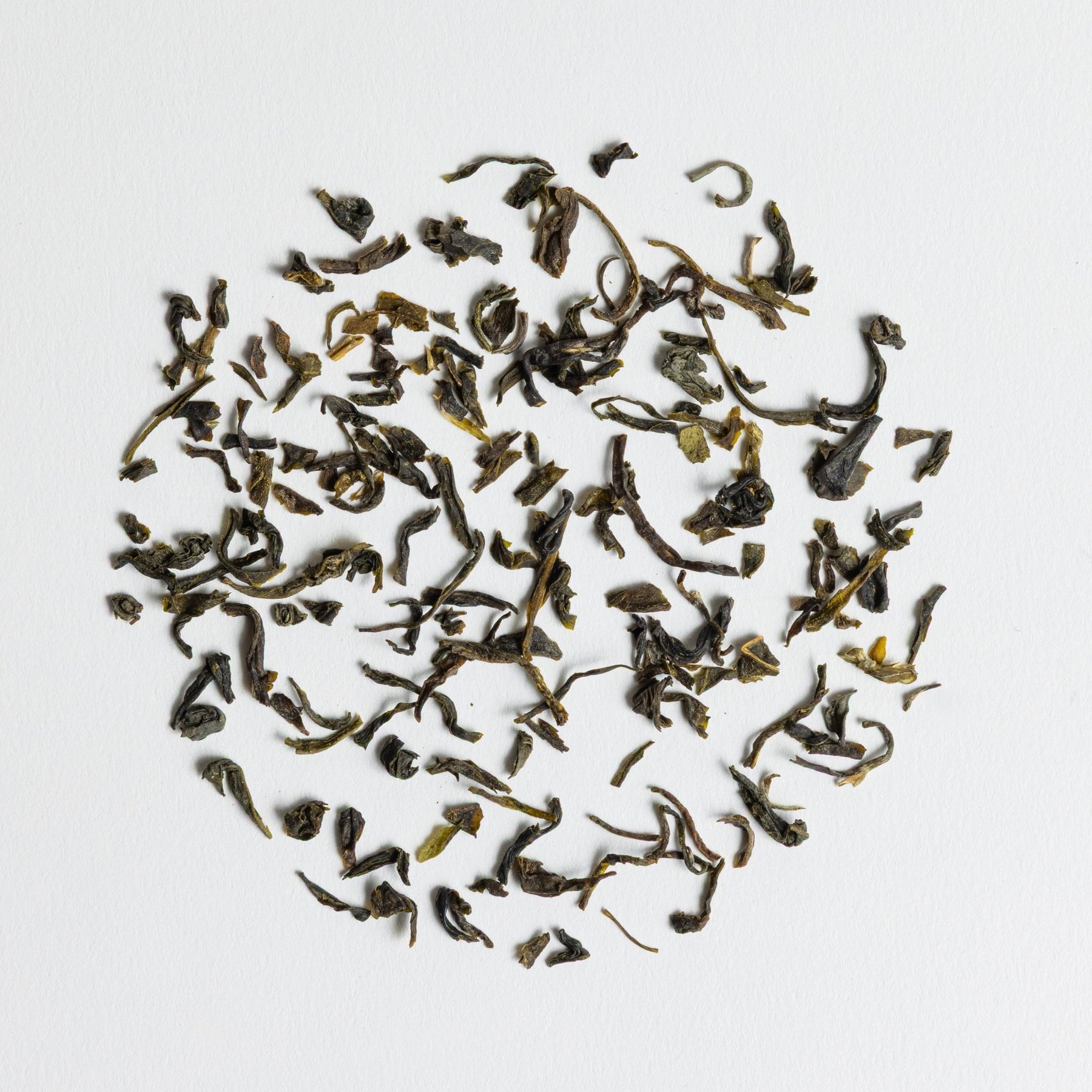 Jasmine Monkey King är ett kraftfullt och ekologiskt grönt te från Fujian-provinsen i Kina, uppskattat för sin unika robusta smak. Detta ekologiska te framställs genom en noggrann process där färska jasminblommor läggs som ett täcke ovanpå de tunt tvinnade, gröna tebladen för att dra till sig smak och arom. De mörkgröna bladen är lättrostade, och deras djupa färg gör att de nästan misstas för svart te vid första anblick.