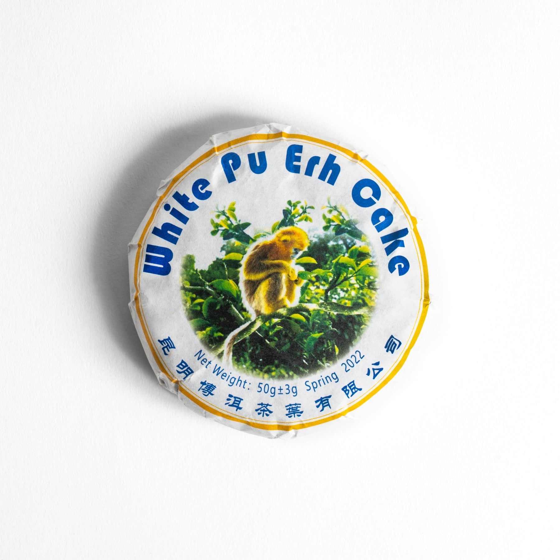 Denna vita tekaka är en blandning av teblad från området nära det kända Nan Nuo-teberget. Tillsammans med vitt te och toppskott har detta skapat fram en lätt söt, fyllig tekaka med toner av mogen frukt.