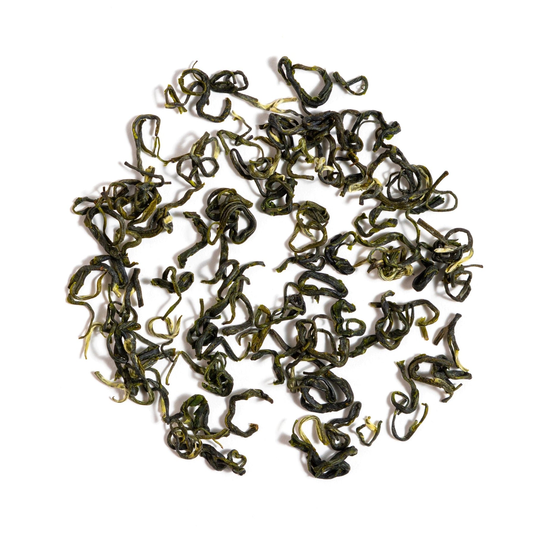 also known as Pi Luo Chun - 洞庭山 碧螺春, is known for its rich flavor and lingering floral aroma. The name, meaning "blue snail spring", was inspired by the tea's delicate spiral shape that resembles a snail's shell. Our Bi Luo Chun comes directly from its origins in the Dong Ting Mountains on Lake Tai in Jiangsu Province, China. This protected natural area has the perfect climate, soil and rainfall, making the Dong Ting Mountains ideal for growing tea bushes. For hundreds of years, local farmers have grown tea bushes side by side with fruit trees, giving Bi Luo Chun its famous floral and fruity aroma.